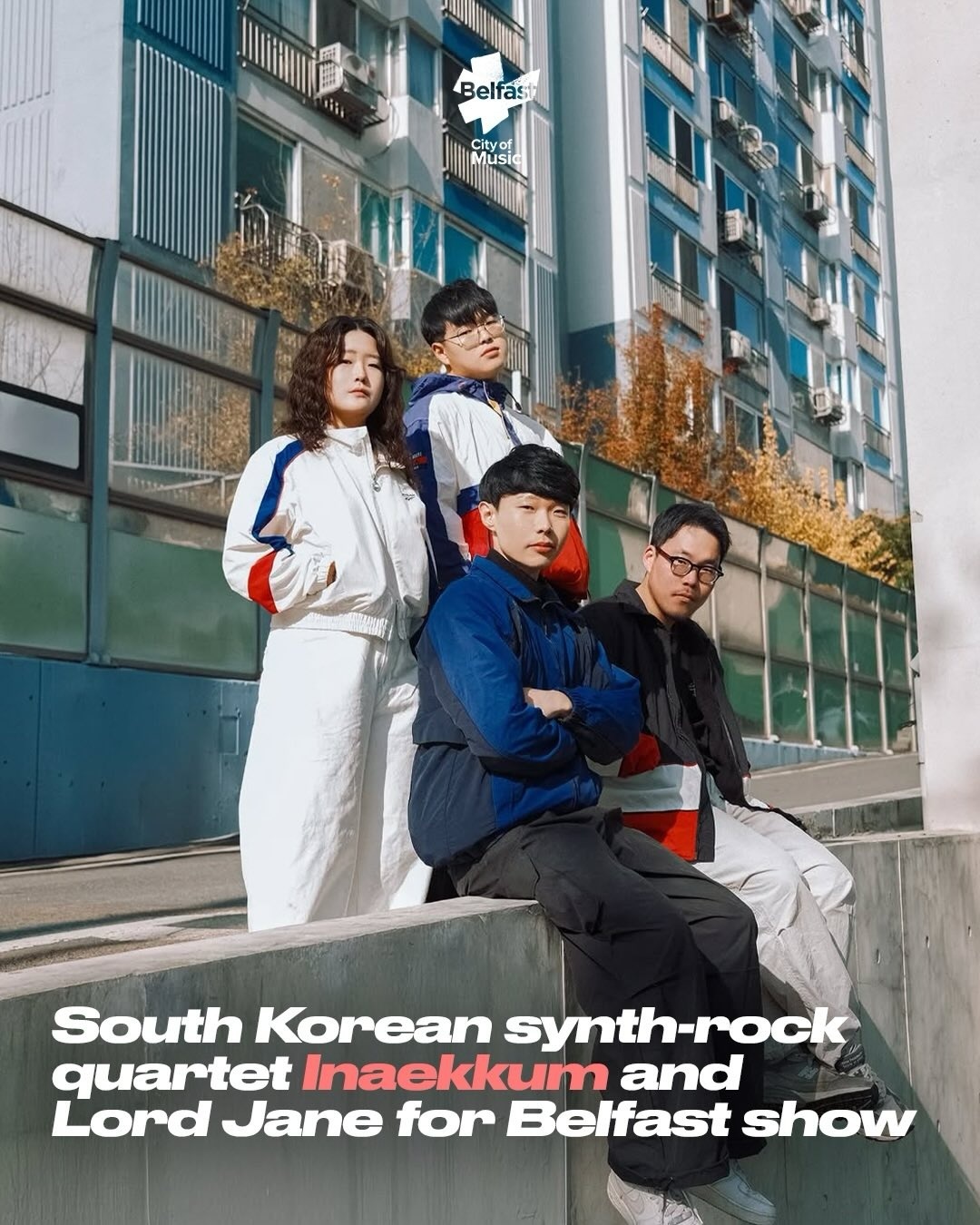 Hosted by Belfast City of Music as part of this year’s Cathedral Quarter Arts Festival, the show is part of an ongoing UNESCO City of Music exchange between Belfast and Daegu in South Korea, following recent collaboration through the 2025 Daegu Global Forum and last November’s visit from HOOLA and their upcycled instrument project.Hailing from Daegu’s indie scene, inaekkum are a four-piece whose sound draws from post-rock, J-rock and Brit-pop, pairing shimmering synths with an intimate, uplifting pull.
