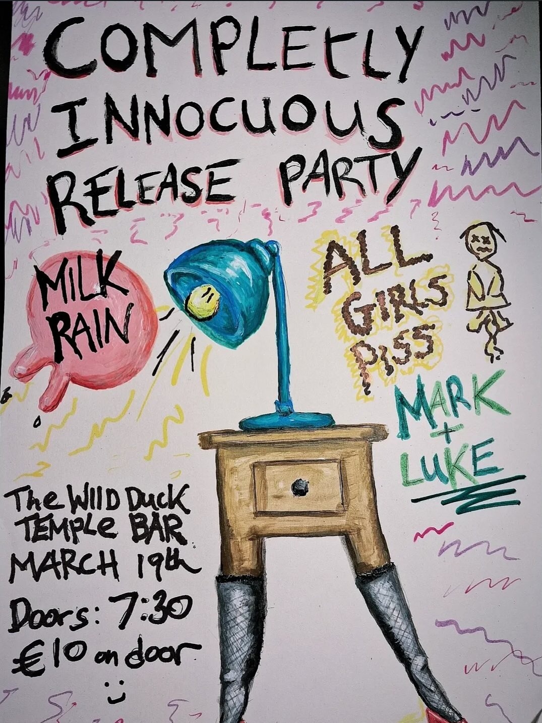https://flypost.ie/event/milk-rain-release-gig-w-all-girls-piss-mark-luke17/20 Sycamore St, Temple Bar, Dublin